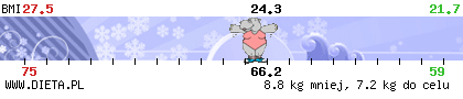 Bardzo trudny do przepisania nicku na A witaj i oczywiście wpadaj kiedy masz ochotę, najlepiej jak najczęściej. Ja obecnie nie mam wagi ale obstawiam zbliżoną do Ciebie wagę startową cel co prawda mam niższy, ale 59 będzie satysfakcjonujące, tak więc trochę mi się rywalizacja włączyła